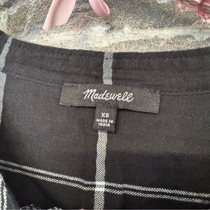 Madewell Collarless Shirt dress in Windowpane black white plaid button down