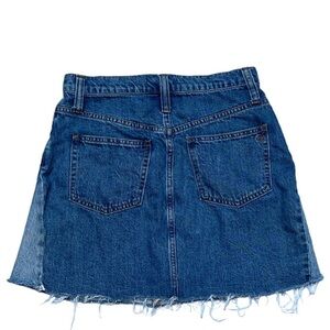 Madewell Color Block Blue Denim Skirt Raw Hem 5 Pocket Styling Zipper Fly Button close at waist