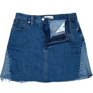 Madewell Color Block Blue Denim Skirt Raw Hem 5 Pocket Styling Zipper Fly