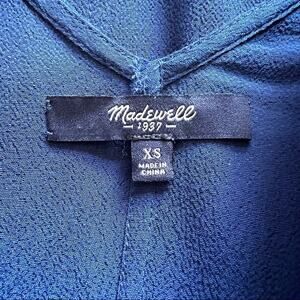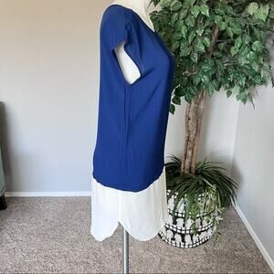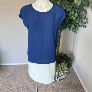 Madewell Color Block Dress Navy and White Round neckline and small cap sleeves. About 35" length.