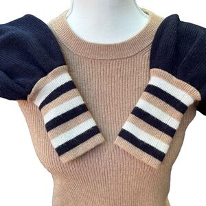 Madewell Colorblock Baybrook Pullover Wool sweater in Tan and Navy Size XX-Small