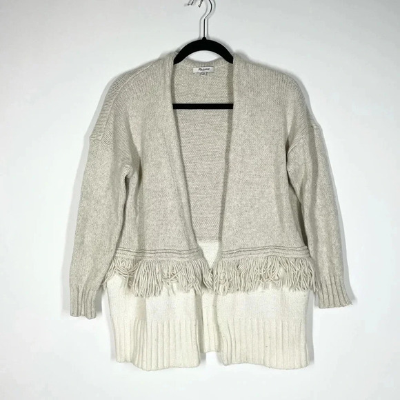 Madewell Colorblock Fringe Wool Blend Cardigan Sweater Size XS