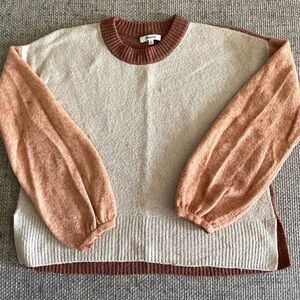 Madewell crew neck sweater with rust and cream colorblock design. Ideal for casual wear. Small