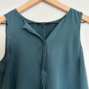 Details: Round neck tank with sheer insets at the shoulder. Split tunic hem.