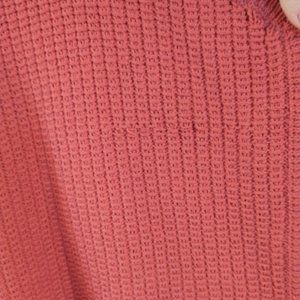 Thickly woven and good quality! The coral color pairs with many other pieces and it is good for layering and as a transitional piece during the seasons. It does have a small snag on the back (I have added a picture), but still great!