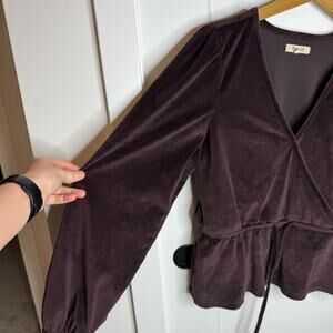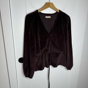 Madewell Corduroy Tie Front Faux Wrap Top Blouse Spiced Raisin Size Medium