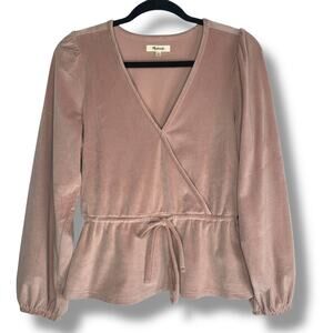Madewell Corduroy Tie-Front Faux-Wrap Top Long Sleeve Size Medium