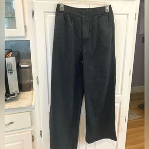 Madewell Cotton Lyocell Linen Pleated High Rise Wide Leg Navy Trousers Size 6