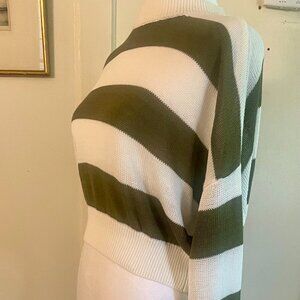 Madewell Cotton & Polyamide loose knit Green & White Striped cropped Sweater Sz