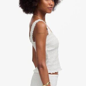 Madewell Cotton Poplin Smocked Cropped Slim Fit Tank White Size M NWT
