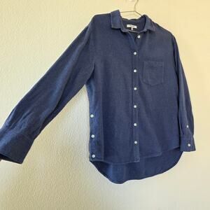 Madewell Cotton Side Button Shirt Womens Size M Blue Long Sleeve Soft Knit Top