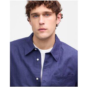Madewell Cotton-Linen Blend Button-Up Shirt in Dark Indigo - Size L - NWT