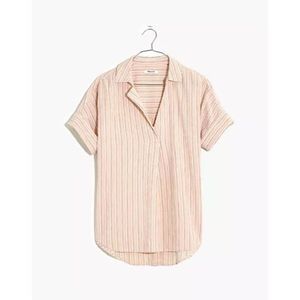 Madewell Courier Button-Back Shirt in Brampton Stripe Size XXL. Style MC809. Retail $69.50. A breezy popover version of our beloved oversized boxy-cool shirt. Pink stripes and buttons down the back give it a fresh feel—leave one or two undone for a low-key hint of skin. Regular fit. 99% Cotton 1% Elastane. Machine wash.