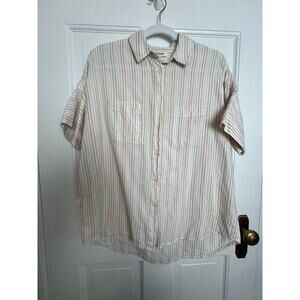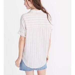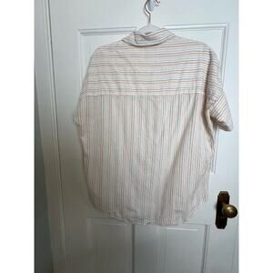 Madewell Courier Shirt Stitched Rainbow Stripe Women's XXS White Boxy Oversized