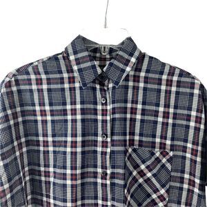 Madewell Courier Shirt Deklab Plaid Boxy Relaxed Fit Short Sleeve Button Down Top Navy Blue & Red