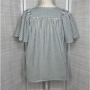 Madewell Courtyard Flutter Sleeve Top Size XS Blue and Ivory Stripes 100% Cotton