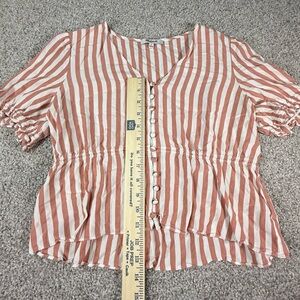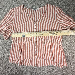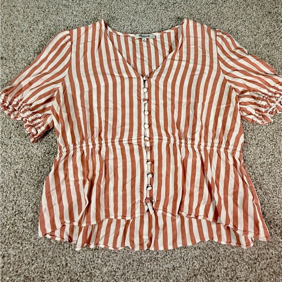 Madewell Courtyard cropped Ruffle-Hem Top | Sz M Orange and white