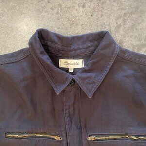 Madewell Coverall Jumpsuit in black linen cotton blend. Size XXL. 2 zippered chest pockets, 2 front waist pockets, 2 back pockets, zipper front closure, and button at the collar. Sleeves are cut off and unhemmed. Otherwise, fabric is in great condition, clean, no wear or spots. All zippers work great. Machine washable.