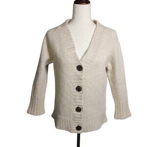 Madewell Cream Alpaca Wool Cardigan with Big Buttons Ribbed Cuffs and Hem XS