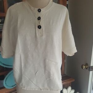 Experience effortless style with this cream shirt from Madewell, perfect for casual outings. Crafted from a textured material, it offers a relaxed fit and a classic rounded neckline for ultimate comfort. Three button detail.