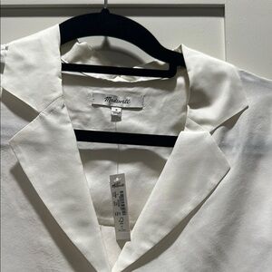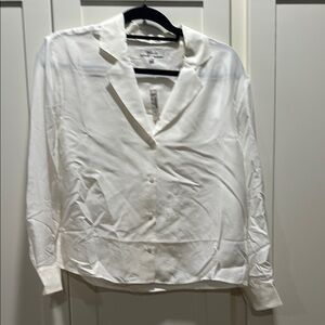 Elegant white silk button-up shirt with a classic collar. Perfect for formal or casual wear.