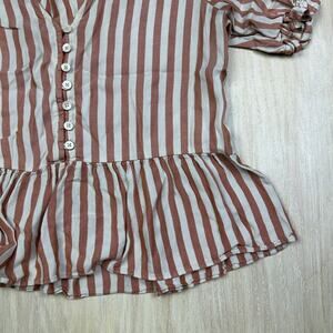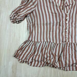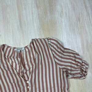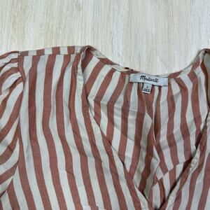 Madewell Cream Courtyard Ruffle Striped V-Neck Pull On Casual Top Blouse Small