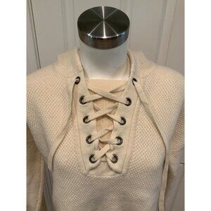 Madewell Cream Knit Hooded Sweater W/ Lace-Up Front, Size Medium