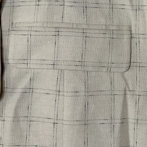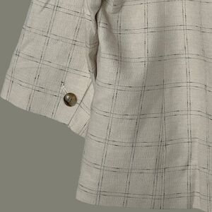 Stylish cream plaid blazer. Features a classic design with button closure. Perfect for formal or casual wear.