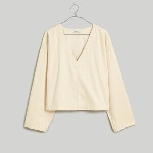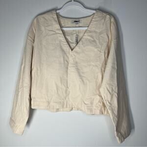 Madewell Cream Waffle-Knit Relaxed V-Neck Top Medium