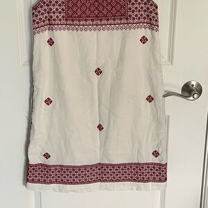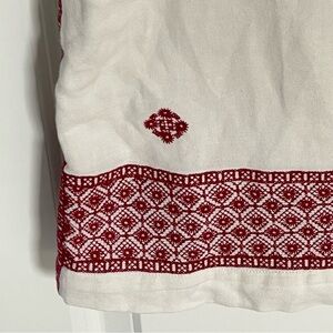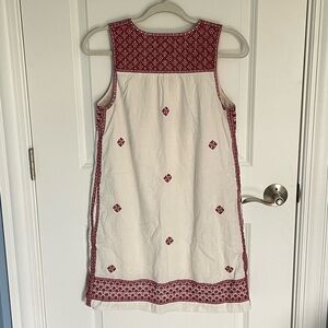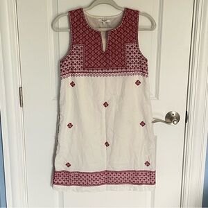 Madewell Cream/Red Stitch Mosaic Embroidered Mini Shift Dress Size 2