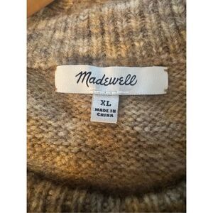 Madewell Crew Neck Space Dye Pleated Sleeve Wool Blend Sweater Cream/Tan Size XL