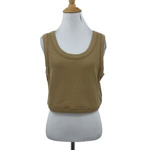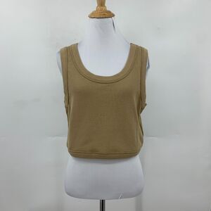 Madewell Crewneck Crop Tank Womens XL Extra Large Seed Khaki Waffle Knit Fitted
