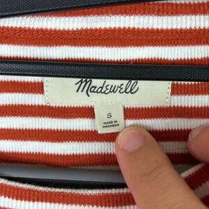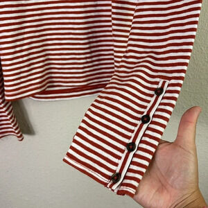 Madewell Crewneck Stripe Long Sleeve Shirt small Orange (brick tone) & white Stripe Ribbed - cool button detail on sleeves.