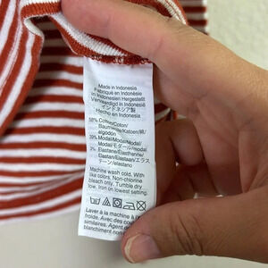 Madewell Crewneck Stripe Long Sleeve Shirt small Orange white Stripe Ribbed