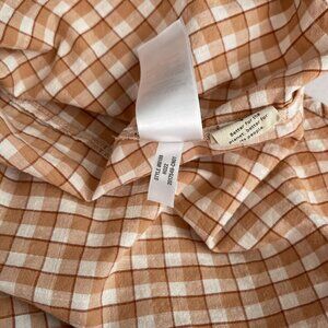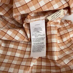 Tags: plaid blouse, puff sleeve blouse, cotton top, Madewell blouse, women's casual top, split neck blouse, beige plaid shirt, Madewell XL top, oversized blouse, beige and white top, lightweight plaid shirt, women's checked blouse, breathable cotton shirt