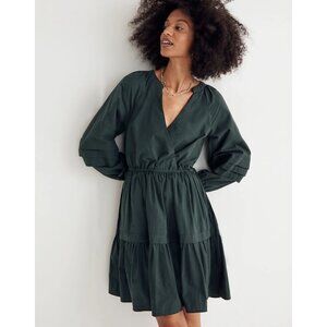Madewell Crinkle Poplin Wrap Mini Dress Dark Palm Green Women's XS [NH093] Boho