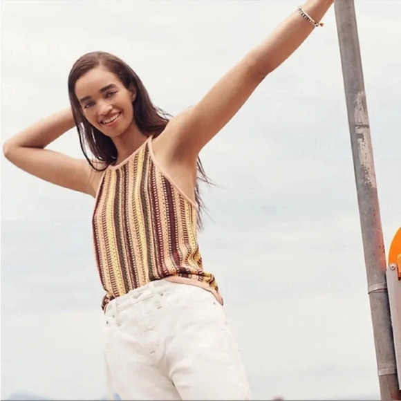 Madewell Crochet Janson Sweater Tank in Rainbow Stripe