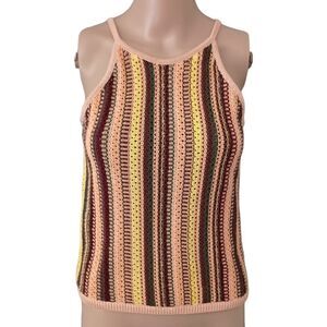 Madewell Crochet Janson Sweater Tank XS Swank Top Rainbow Striped Cotton Neutral. Condition is pre-owned and EXCELLENT condition. No rips, tears, holes or discolorations. All cotton. PLEASE SEE MEASUREMENTS!!