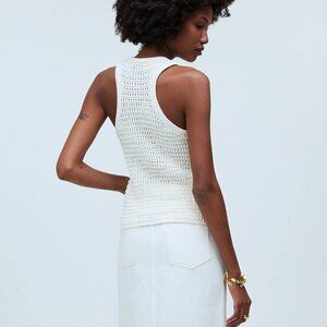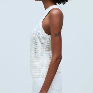 Madewell Crochet-Knit Crewneck Cotton Sweater Tank Bright Ivory Size S