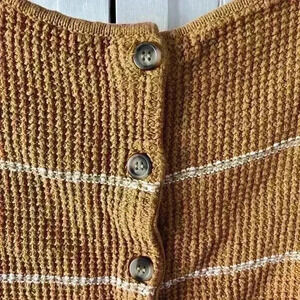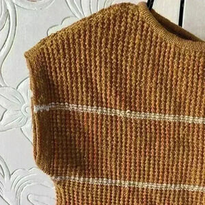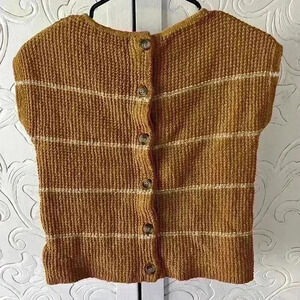Madewell Crocheted Sweater Top Striped Neutral Button Back Short Sleeved Boho XS