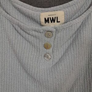 Madewell Crop Tank Top Ribbed Sleeveless Glassware Blue Womens XXL Comfy Lounge Lightweight Recycled Polyester Shell Buttons