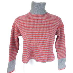 Item: Women's Crop Waffle Knit Wool Turtleneck Sweater Red Gray
