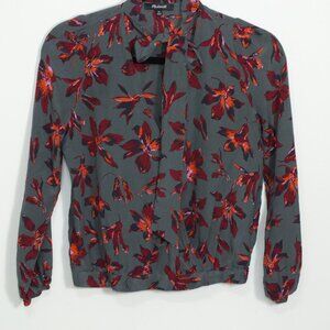 Madewell Cropped 100% Silk Floral Tie Top Size XS