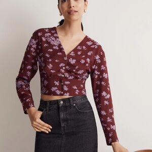Madewell Cropped Long Sleeve V-Neck Button-Front Shirt