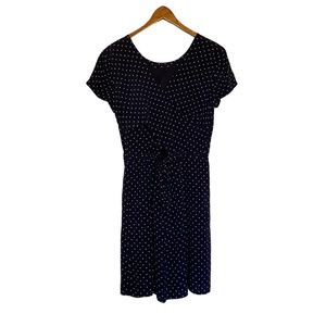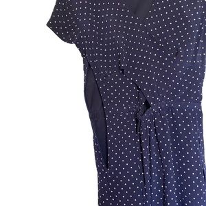 Navy blue 100% silk dress in a polka dots and stars pattern