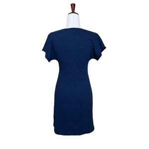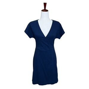 Dark blue faux wrap V-neck dress. Above the knee length.