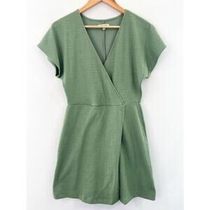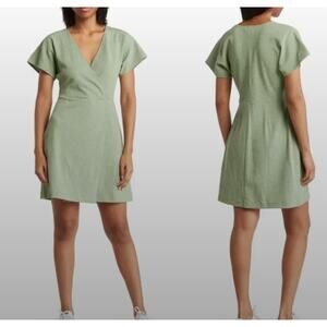 Madewell Cross Front Flutter Sleeve Mini Dress Small Sage Green V Neck Textured