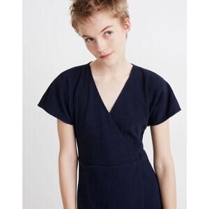 Madewell Cross Front Mini Dress V Neck Short Sleeve Black Size M NWOT