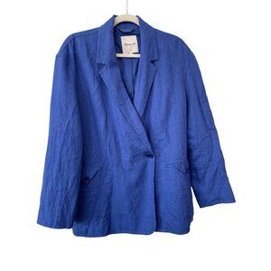 Madewell Crossover Linen Blazer Jacket Size Medium Blue Business Professional