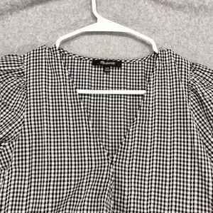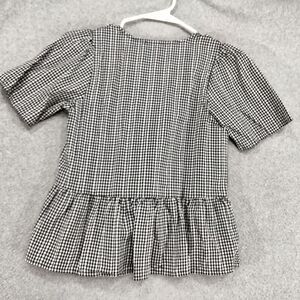 Madewell Crossover Peplum Top Wmns Sz XXS Black White Gingham Peplum Shrt Sleeve
